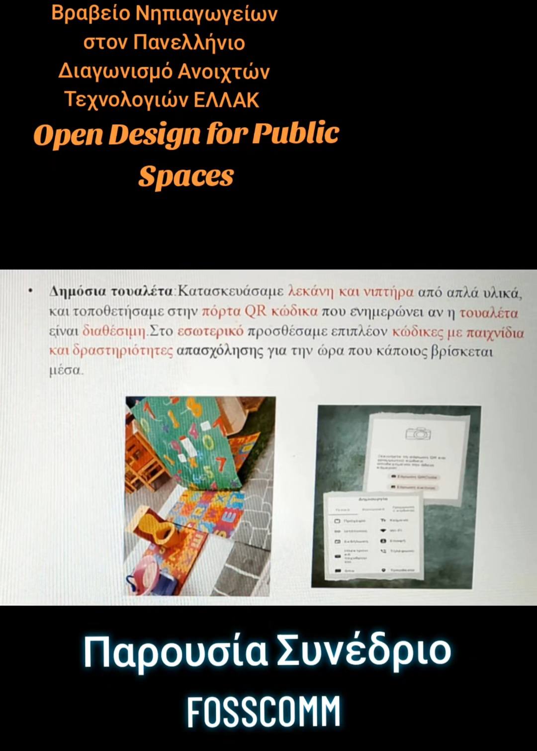 Με ιδιαίτερη χαρά και περηφάνια, το νηπιαγωγείο μας συμμετείχε εξ αποστάσεως στο συνέδριο FOSSCOMM, που πραγματοποιήθηκε στο Καρλόβασι της Σάμου, παρουσιάζοντας το διακριθέν έργο μας στον 7ο Πανελλήνιο Διαγωνισμό Ανοιχτών Τεχνολογιών ΕΛΛΑΚ για το σχολικό έτος 2024–2025.