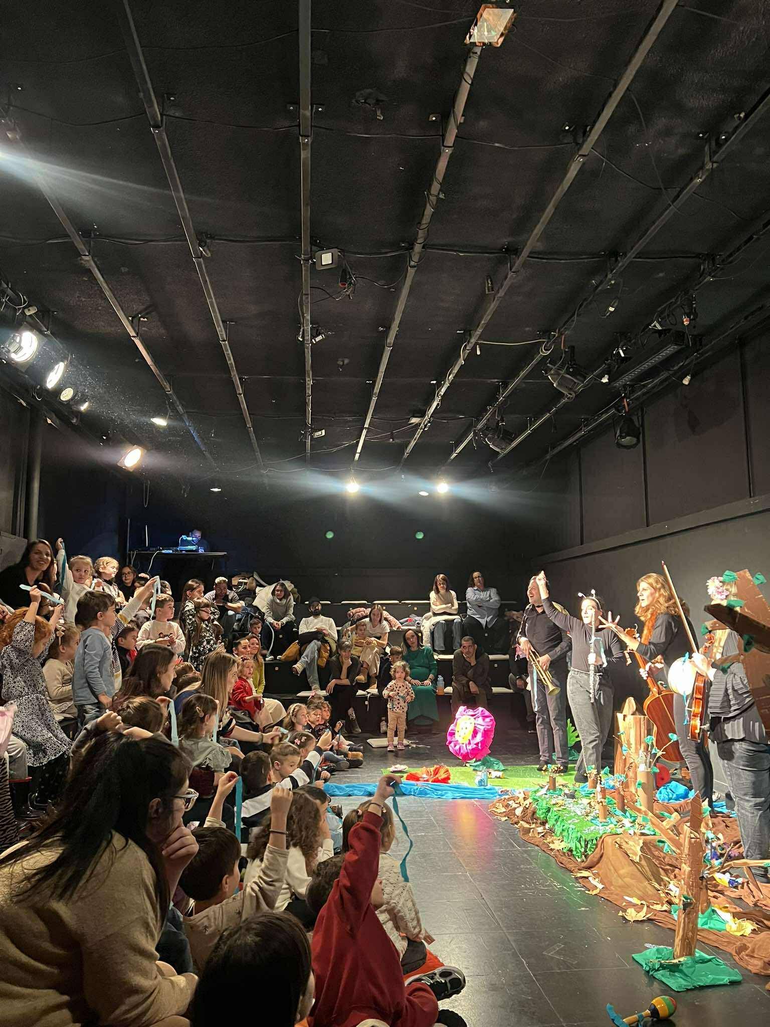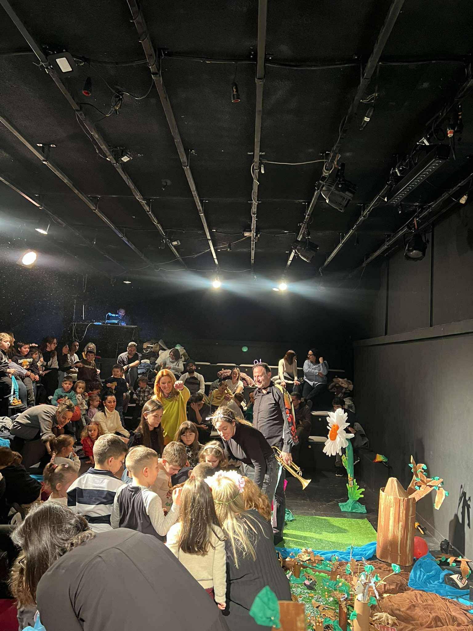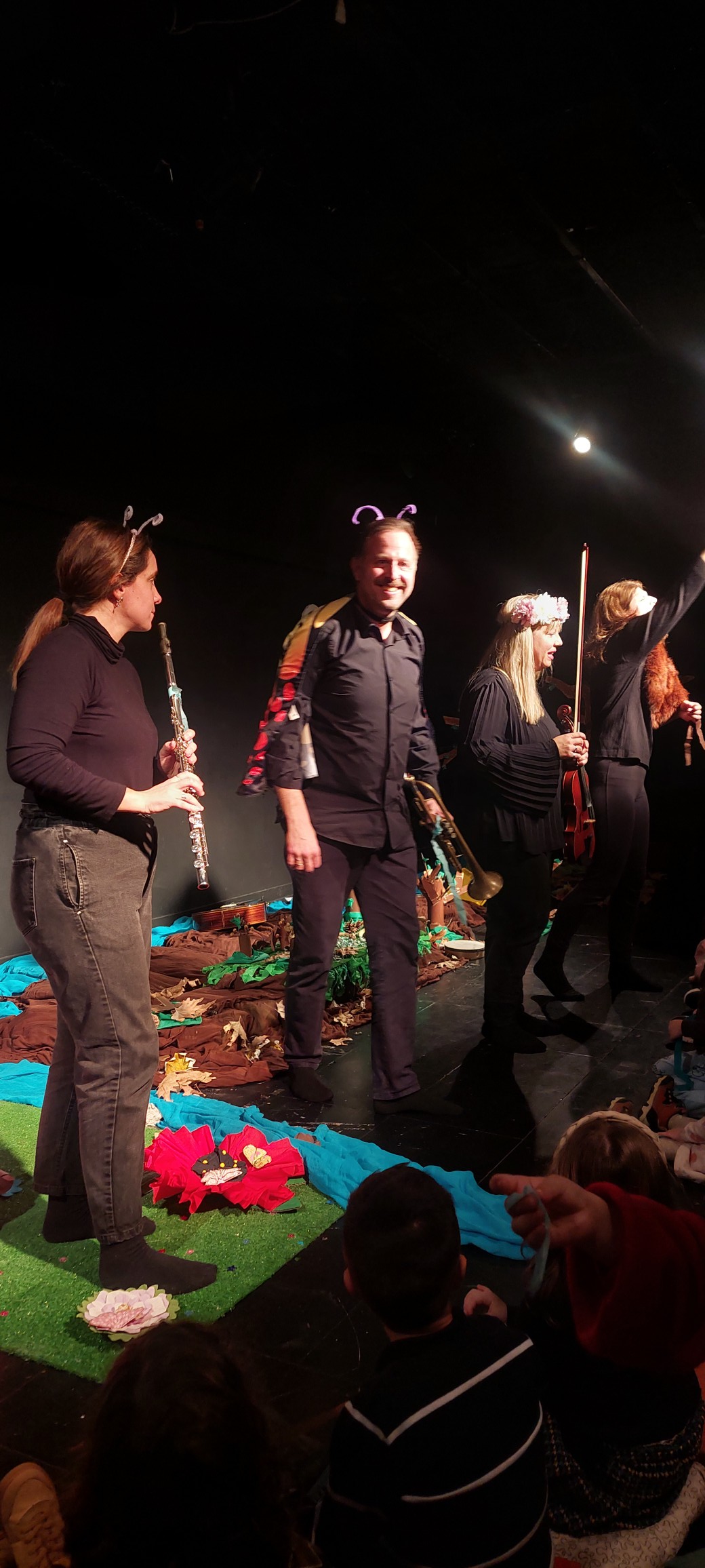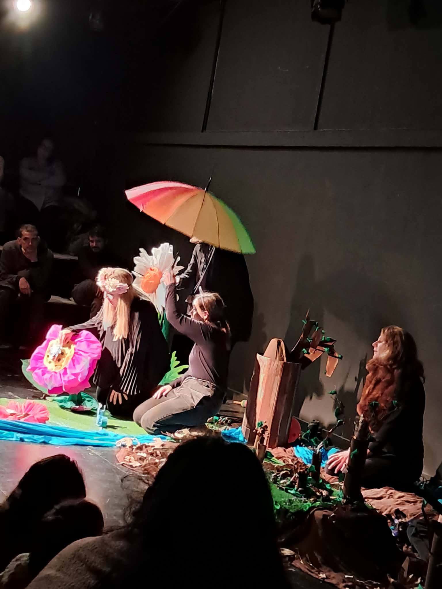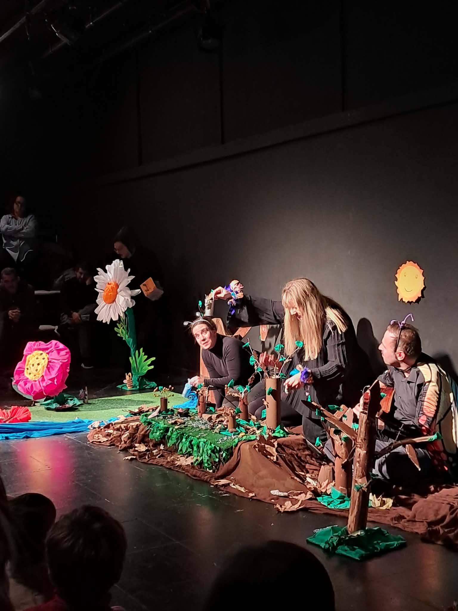Η παράσταση, λιτή και ποιητική, δημιούργησε έναν χώρο συναισθηματικής ασφάλειας και φαντασίας, όπου ο ήχος των ζωντανων οργάνων συνομιλούσε αρμονικά με τον λόγο και τα σκηνικά φτιαγμένα από ανακυκλώσιμα υλικά.